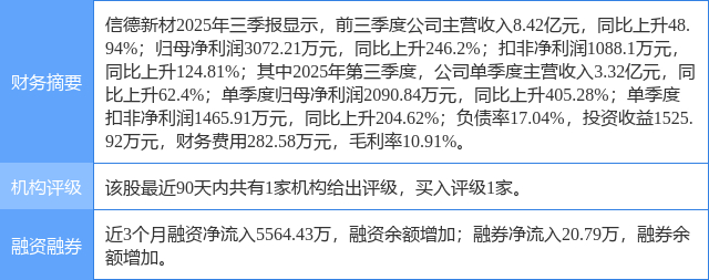 信德新材涨7.05%,开源证券一日前给出“买入”评级