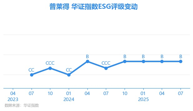 从细项得分来看,普莱得E项得分60.98,评级为CC,行业内排名165/449(E项目评分维度包括气候变化、资源利用、环境污染、环境友好、环境管理);S项得分83.15,评级为BBB,行业内排名119/449(S项目评分维度包括人力资本、产品责任、供应商、社会贡献);G项得分80.88,评级为BBB,行业内排名202/449(G项目评分维度包括股东权益、治理结构、信披质量、治理风险、外部处分、商业道德)。