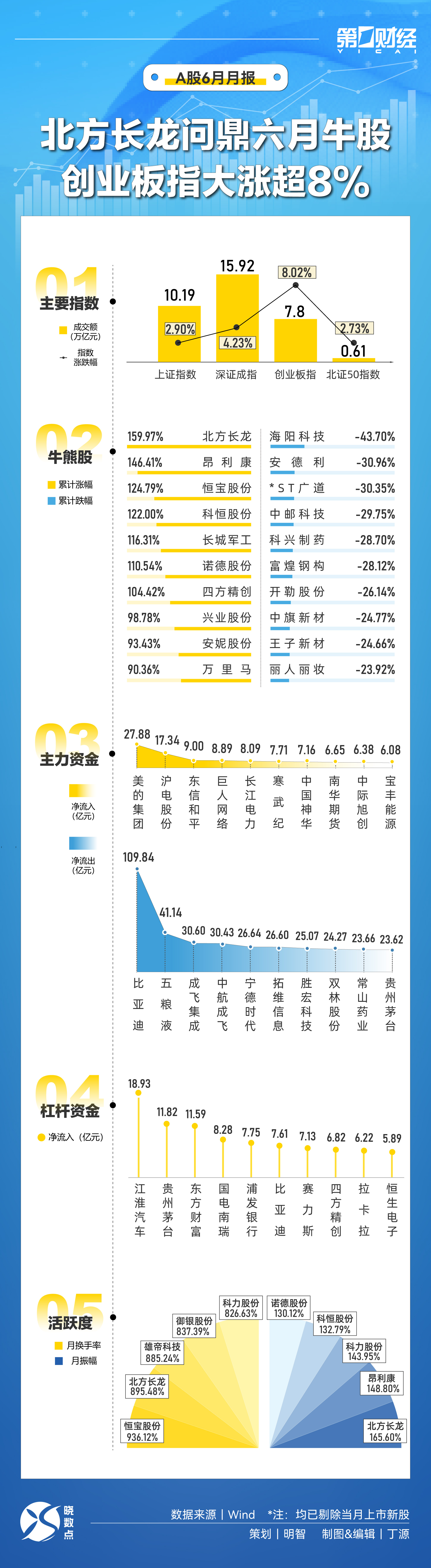 晓数点|速览6月A股:北方长龙问鼎月度牛股 创业板指大涨超8%