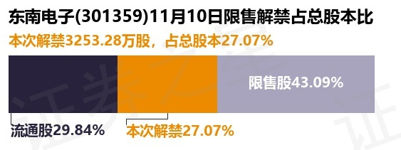 东南电子(301359)3253.28万股限售股将于11月10日解禁,占总股本27.07%