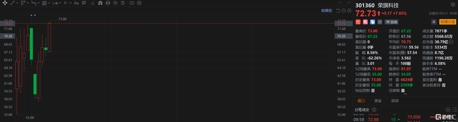 格隆汇5月11日丨荣旗科技(301360.SZ)涨7.65%,报价72.73元,总市值38亿元。公司在投资互动平台回应,苹果加快产线外迁至印度等地,境外新设产线会增加公司的检测设备配套。