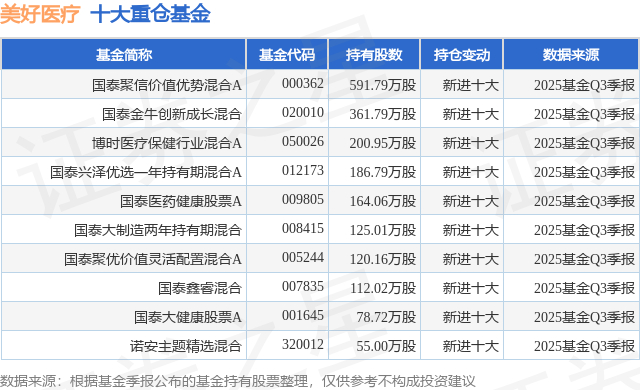 重仓美好医疗的前十大公募基金请见下表: