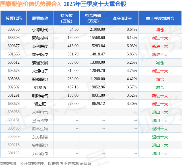 国泰聚信价值优势混合A的前十大重仓股如下:
