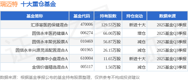 重仓瑞迈特的公募基金请见下表: