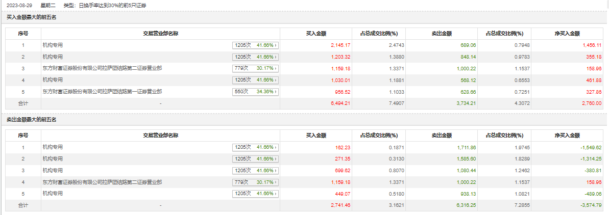 具体来看,机构买入5960.77万元,卖出7421.34万元,合计净卖出1460.57万元。此外,东方财富证券拉萨团结路第二证券营业部、东方财富证券拉萨团结路第一证券营业部分别买入1159.18万元、956.52万元;东方财富证券拉萨团结路第二证券营业部、东方财富证券拉萨团结路第一证券营业部分别卖出1000.22万元、628.66万元。