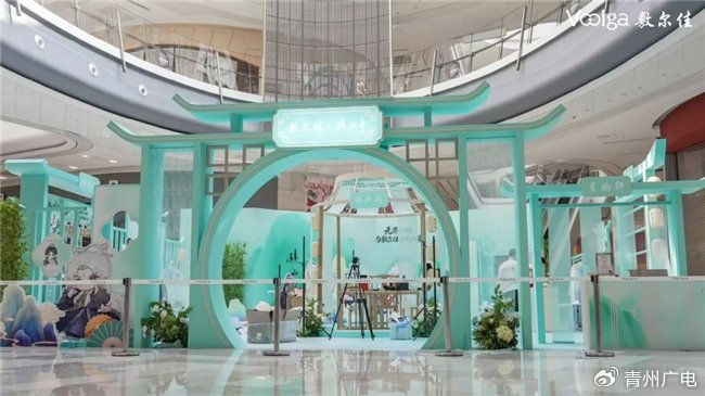 敷尔佳在北外滩来福士的「赴山海」主题快闪店,进一步将周边产品的情感价值具象化。实景搭建的江湖场景中,山水屏风、竹影灯盏、留言墙与换装区共同构成一个沉浸式叙事空间。游客在此可提笔留下江湖寄语,可身着侠服装扮角色,还可通过互动游戏赢取周边礼品。这种「可触摸、可参与、可传播」的体验设计,让品牌从抽象的概念转化为具体的情感记忆。