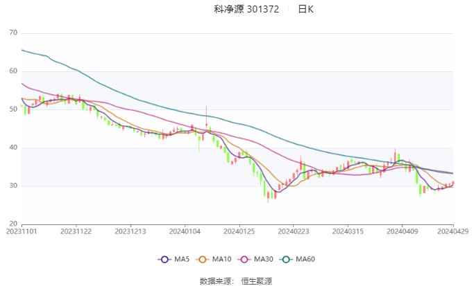 以4月29日收盘价计算,科净源目前市盈率(TTM)约为110.27倍,市净率(LF)约为2.32倍,市销率(TTM)约为7.09倍。