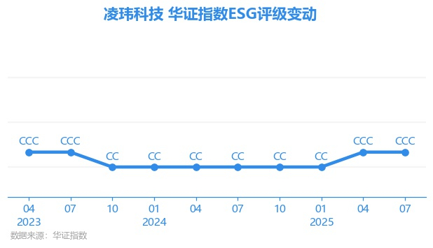 日前,华证指数公布了新一期(2025年7月31日)的ESG评级结果,凌玮科技(301373.SZ)获得CCC评级(华证指数评级为C起至AAA九档,C为最低档,AAA为其最高一级评级/AA为其第二档),上一期(2025年4月30日)ESG评级为CCC。本期ESG评级在462家化学制品行业A股上市公司中排名第258(上一期排名第383)。