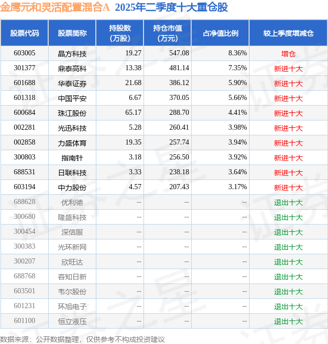 金鹰元和灵活配置混合A的前十大重仓股如下: