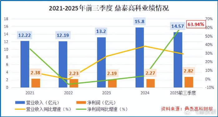 它不直接面向消费端,而是在产业链里默默“卖铲”。公司2025年前三季度实现营业收入14.57亿,净利润2.82亿元,增长超60%,可谓“春风拂面”。