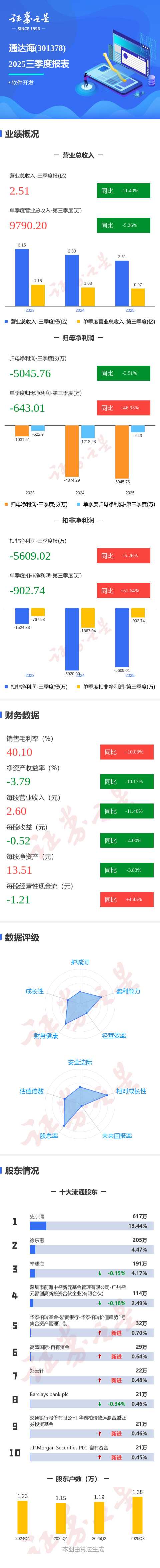 图解通达海三季报:第三季度单季净利润同比增长46.96%