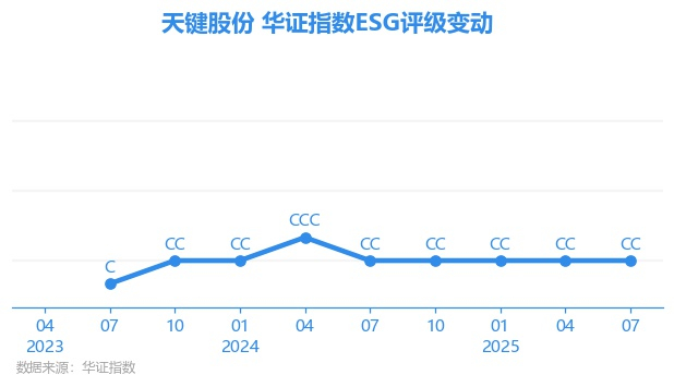 日前,华证指数公布了新一期(2025年7月31日)的ESG评级结果,天键股份(301383.SZ)获得CC评级(华证指数评级为C起至AAA九档,C为最低档,AAA为其最高一级评级/AA为其第二档),上一期(2025年4月30日)ESG评级为CC。本期ESG评级在147家家庭耐用消费品行业A股上市公司中排名第121(上一期排名第27)。