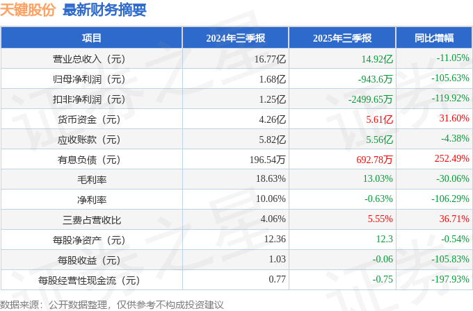 天键股份(301383)2025年三季报简析:净利润同比下降105.63%,公司应收账款体量较大