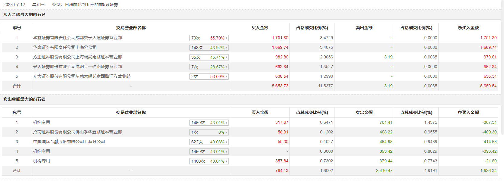 具体来看,机构买入674.91万元,卖出1477.27万元,合计净卖出802.36万元。此外,华鑫证券成都交子大道证券营业部、华鑫证券上海分公司分别买入1701.80万元、1669.74万元;招商证券佛山季华五路证券营业部、中国国际金融上海分公司分别卖出468.22万元、464.98万元。