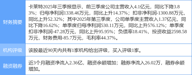 卡莱特涨5.38%,太平洋一周前给出“买入”评级