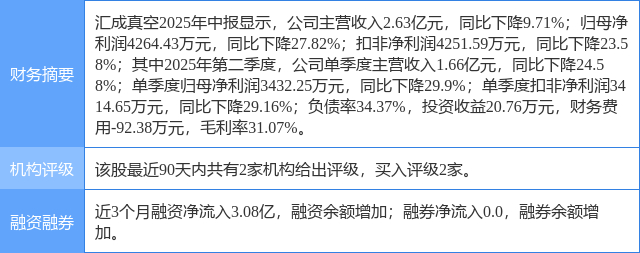 2025年8月21日,国金证券研究员樊志远发布了对汇成真空的研报《业绩短期承压,看好公司在光学镀膜设备的布局》,该研报对汇成真空给出“买入”评级。研报中预测公司2025-2027年归母净利润分别为1.13、1.52、1.96亿元,同比+66.43%、33.75%、29.46%,公司现价对应PE估值为157.44、117.72、90.93倍,维持“买入”评级。证券之星数据中心根据近三年发布的研报数据计算,该研报作者对此股的盈利预测准确度为71.88%。