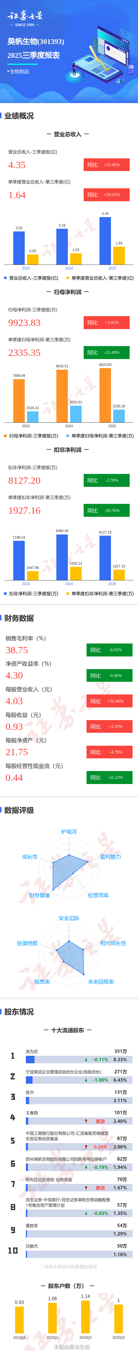 图解昊帆生物三季报:第三季度单季净利润同比下降23.50%