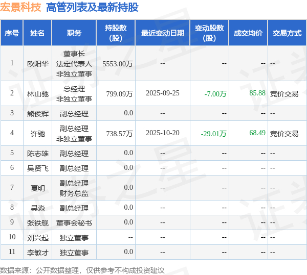 宏景科技:10月30日高管许驰减持股份合计11万股