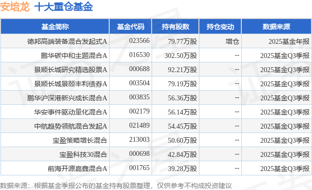 重仓安培龙的前十大公募基金请见下表: