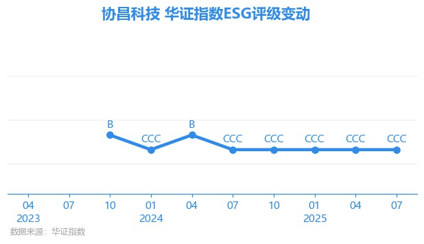 日前,华证指数公布了新一期(2025年7月31日)的ESG评级结果,协昌科技(301418.SZ)获得CCC评级(华证指数评级为C起至AAA九档,C为最低档,AAA为其最高一级评级/AA为其第二档),上一期(2025年4月30日)ESG评级为CCC。本期ESG评级在321家电气设备行业A股上市公司中排名第276(上一期排名第282)。