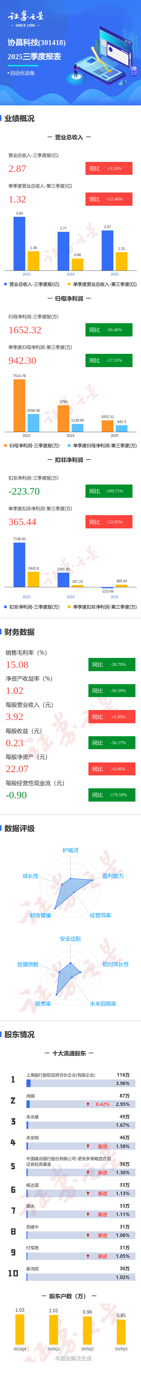 图解协昌科技三季报:第三季度单季净利润同比下降17.32%