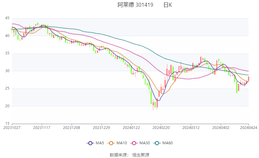 阿莱德:2023年净利润5671.38万元 同比下降23.64%
