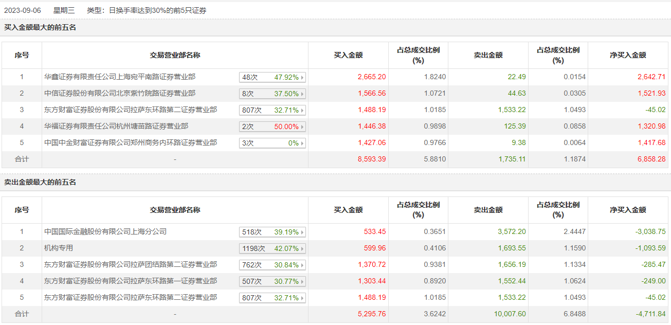 具体来看,机构买入599.96万元,卖出1693.55万元,合计净卖出1093.59万元。此外,知名游资现身龙虎榜,炒股养家(华鑫证券上海宛平南路证券营业部)、中信证券北京紫竹院路证券营业部分别买入2665.20万元、1566.56万元;中国国际金融上海分公司、东方财富证券拉萨团结路第二证券营业部分别卖出3572.20万元、1656.19万元。