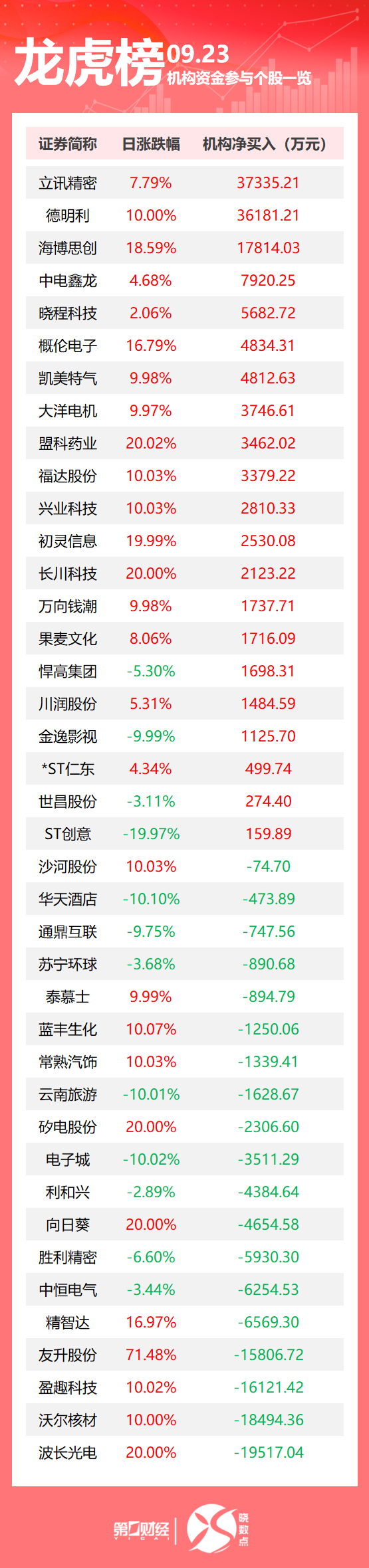 当天机构净买入前三的股票分别是立讯精密、德明利、海博思创,净买入金额分别是3.73亿元、3.62亿元、1.78亿元。
