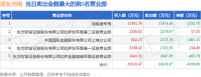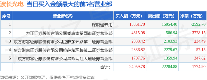 9月25日波长光电(301421)龙虎榜数据:北向资金净卖出2592.7万元