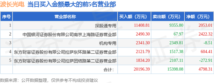 10月13日波长光电(301421)龙虎榜数据:机构净卖出6150.67万元,北向资金净买入2053.01万元