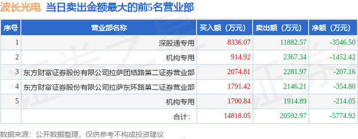 10月14日波长光电(301421)龙虎榜数据:机构净卖出1666.47万元,北向资金净卖出3546.5万元