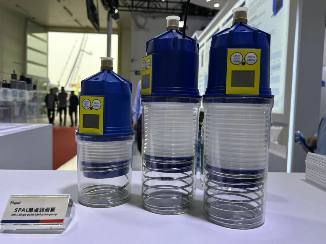 盘古智能此次参展的产品线之丰富,彰显了其在润滑与液压领域的技术积累与创新成果。从单线式润滑系统到递进式式润滑系统,从PG231润滑泵到各类分配器、注油器、高空作业车阀组、电液控换向阀、斜齿齿轮泵、TP-16电动补脂泵、工业气动泵、低净空油脂泵等,这些产品广泛应用于各种工程机械设备,展示了盘古智能全面覆盖工程机械设备需求的产品矩阵以及对细分市场需求的精准把握。