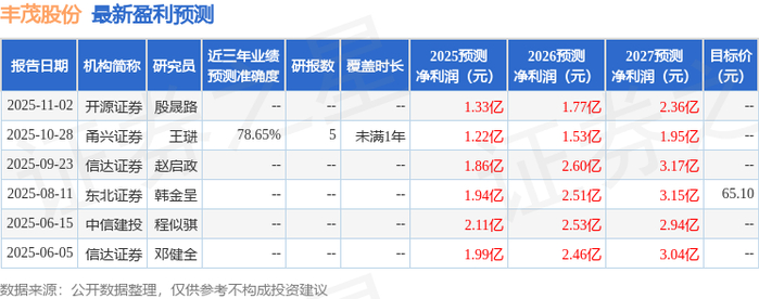 丰茂股份2025年三季报显示,前三季度公司主营收入6.74亿元,同比上升0.58%;归母净利润8494.29万元,同比下降27.74%;扣非净利润6588.53万元,同比下降36.81%;其中2025年第三季度,公司单季度主营收入2.42亿元,同比上升4.46%;单季度归母净利润2445.17万元,同比下降31.06%;单季度扣非净利润1779.18万元,同比下降43.99%;负债率31.15%,投资收益597.72万元,财务费用-410.55万元,毛利率26.26%。