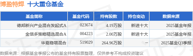 重仓博盈特焊的公募基金请见下表:
