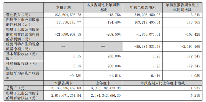 其中第三季度,致尚科技营业收入为2.34亿元,同比下降18.75%;归母净利润为-1855.61万元,同比下降194.40%;扣非归母净利润为-2109.09万元,同比下降208.50%;基本每股收益-0.15元。