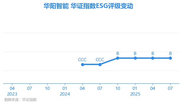 日前,华证指数公布了新一期(2025年7月31日)的ESG评级结果,华阳智能(301502.SZ)获得B评级(华证指数评级为C起至AAA九档,C为最低档,AAA为其最高一级评级/AA为其第二档),上一期(2025年4月30日)ESG评级为B。本期ESG评级在321家电气设备行业A股上市公司中排名第195(上一期排名第198)。