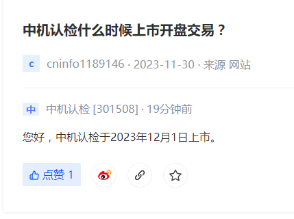 在互动平台表示,公司已于2023年12月1日上市开盘交易。