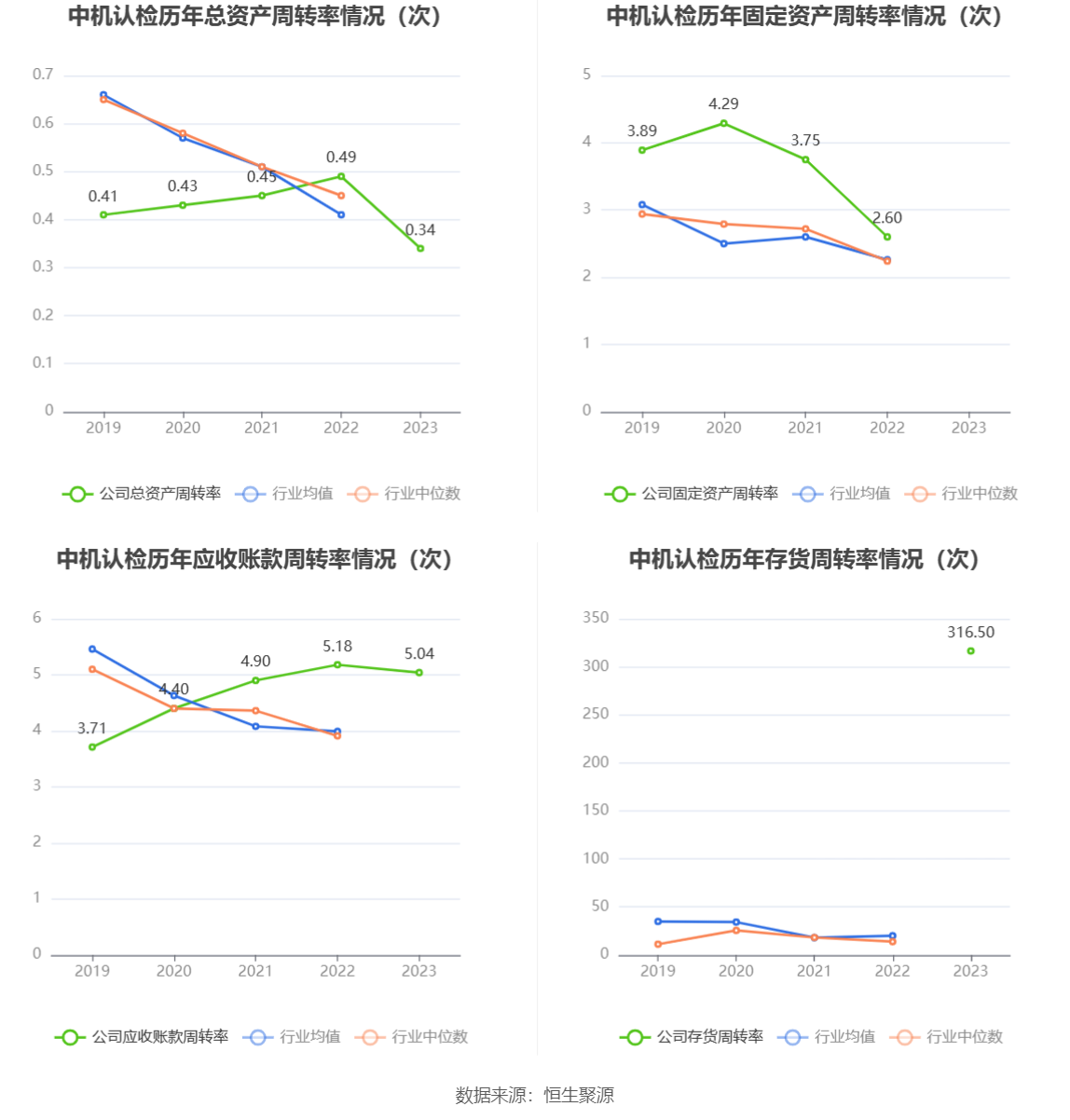 数据统计显示,中机认检近三年营业总收入复合增长率为20.61%,在检测服务行业已披露2023年数据的9家公司中排名第3。近三年净利润复合年增长率为19.54%,排名4/9。