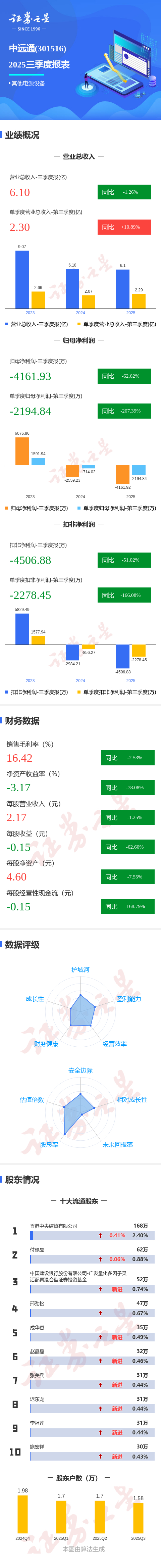 图解中远通三季报:第三季度单季净利润同比下降207.39%
