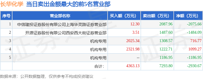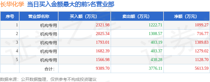 9月30日长华化学(301518)龙虎榜数据:机构净买入4426.63万元
