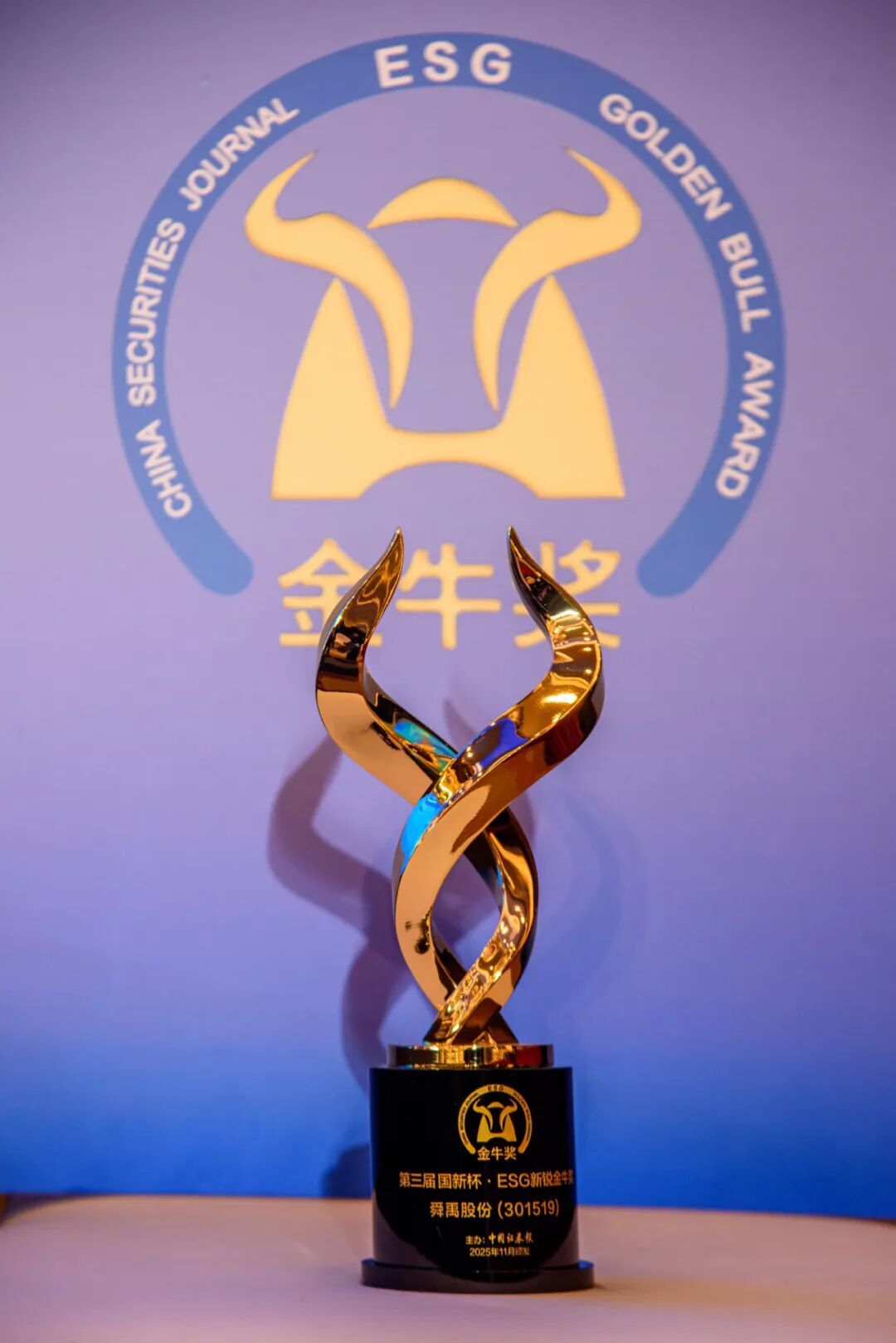 可持续发展再创佳绩丨舜禹股份荣膺“第三届国新杯·ESG新锐金牛奖”