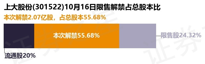 上大股份(301522)2.07亿股限售股将于10月16日解禁,占总股本55.68%