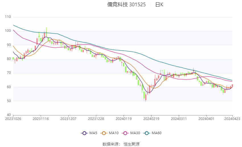 儒竞科技:2024年第一季度净利润4314.12万元 同比下降1.83%