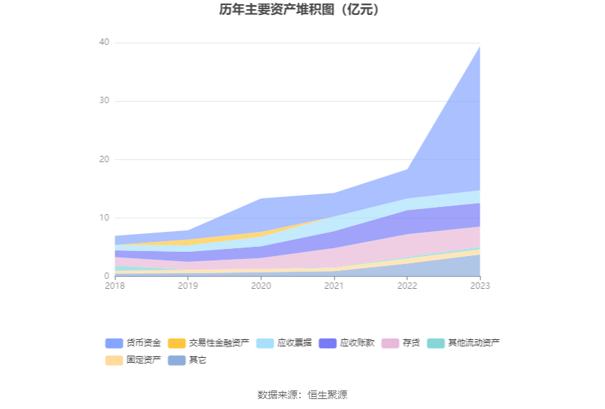 资产重大变化方面,截至2023年年末,公司货币资金较上年末增加394.84%,占公司总资产比重上升35.39个百分点;存货较上年末减少10.55%,占公司总资产比重下降12.45个百分点;应收账款较上年末减少1.07%,占公司总资产比重下降12.09个百分点;应收票据较上年末增加7.23%,占公司总资产比重下降5.51个百分点。