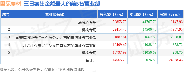 2月12日国际复材(301526)龙虎榜数据:机构净买入8932.88万元(3日),北向资金净买入1.81亿元(3日)
