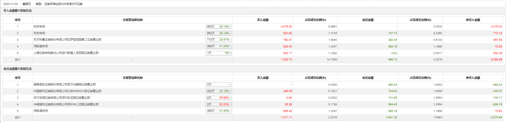 11月3日,多浦乐今日涨13.71%,全天换手率达38.72%,振幅达18.03%。龙虎榜数据显示,营业部席位合计净买入3422.69万元。其中,机构买入5096.08万元,卖出107.74万元,合计净买入4988.34万元。此外,东方财富证券拉萨团结路第二证券营业部、深股通专用分别买入760.07万元、636.43万元;国泰君安证券武汉马鹦路证券营业部、中国银河证券北京中关村大街证券营业部分别卖出860.83万元、784.63万元。