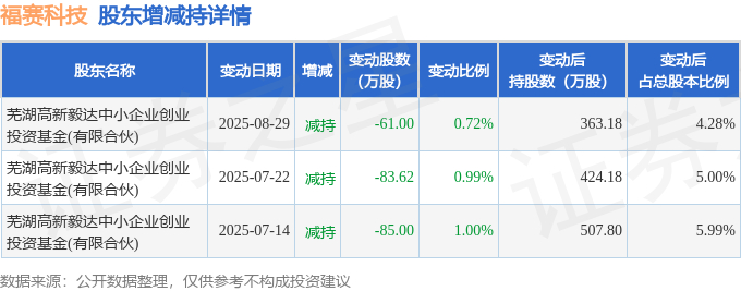 该股近半年内有股东持股变动,合计净减持229.62万股,股东增减持明细如下表: