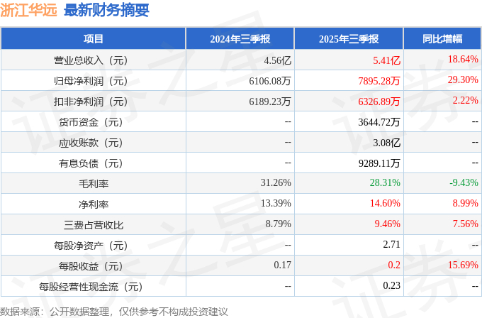 浙江华远(301535)2025年三季报简析:营收净利润同比双双增长,公司应收账款体量较大