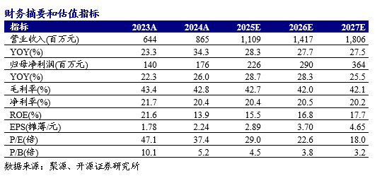 公司发布2025年三季报,前三季度公司实现营业收入7.28亿元,实现归母净利润1.37亿元,分别同比增长23.43%和18.82%。其中Q3,公司实现收入2.49亿元,实现归母净利润0.43亿元,同比增长10.19%和21.39%。公司前三季度收入保持快速增长主要原因系公司对汽车行业、通讯电子、工程机械三大主要应用领域的销售额持续增加。仅2025年H1,公司汽车行业收入同比增速就达43.32%,其中新能源车行业收入同比增长54.70%。我们维持盈利预测,预计2025-2027年公司利润为2.26/2.90/3.64亿元,对应PE为29.0/22.6/18.0倍,维持买入评级。