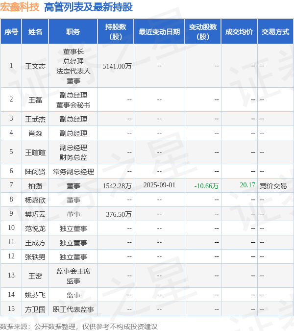 宏鑫科技近半年内的董监高及核心技术人员增减持详情如下: